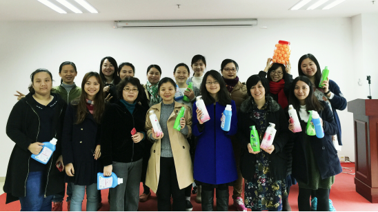 再看保齡球那里,剛開始大家低估了難度,開始玩的時候才發現要擊中目標并不容易,好幾位“女神”直接與目標“擦肩而過”,那是捶胸頓足啊!排隊最長的莫不是吹兵乓球那里,大家憋足一口氣小心翼翼地把兵乓球從第一個水杯吹到第七個水杯,由于只有一次機會,中途球掉落在水杯外面即作廢,需重新排隊,大家充分發揮不屈不撓的毅力,終于成功贏取小禮品。