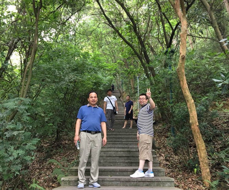 越往山上走,階梯就越陡峭,看起來并不是很高的山峰,走起來卻甚為吃力。同事們因為平常缺乏鍛煉,沒走多遠,己經累得氣喘吁吁了,于是大家開始相互鼓勵,堅持邁向山頂。